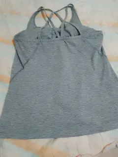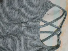 Color gris,en buen estado con tiene almohadillas en la parte del pecho tipo para hacer ejercicio o para nadar talla mediana una posible grande