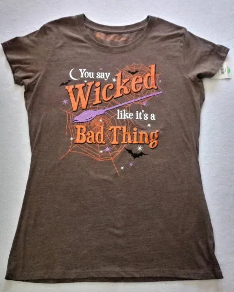 Playera cafe de marca americana. Playera basic con estampado de dia de brujas mide alrededor de las axilas 100 cm