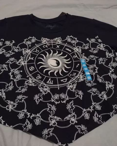 Playera estampada con signos zodiacales color azul marino esta talla eg pero viene reducida