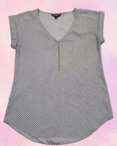 Preciosa blusa de puntitos con cierre. De tela suavecita y sedosa.De manga corta muy fresca y se ve muy bonita.La puedes usar con Jeans o en un look más formal.