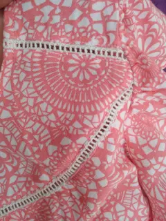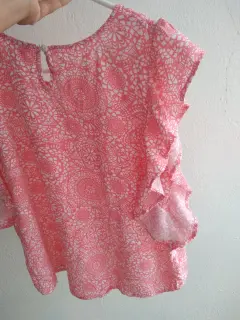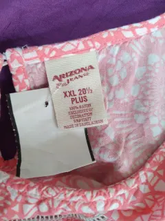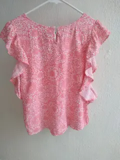 Bella estampa en rosa, tela super suave, dice xxl pero queda a mediana o grande, tipo bluso , a la cadera