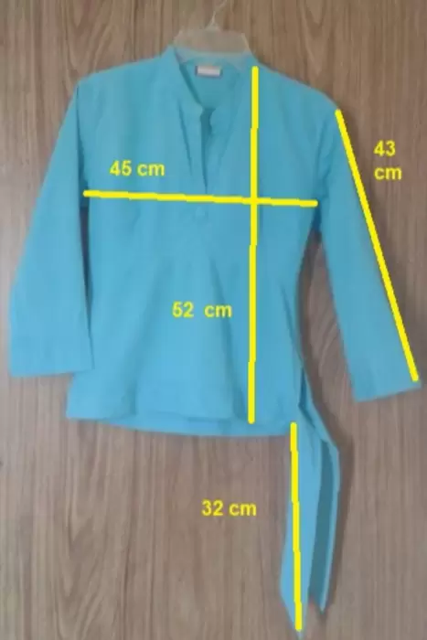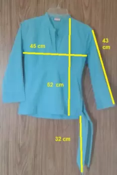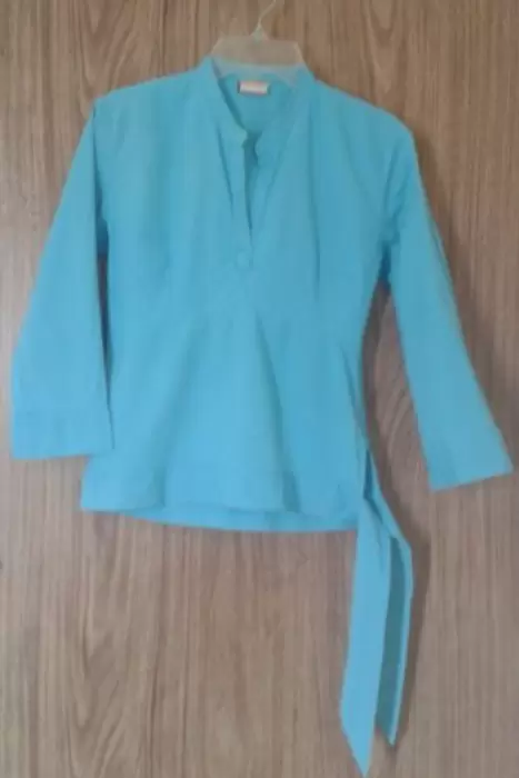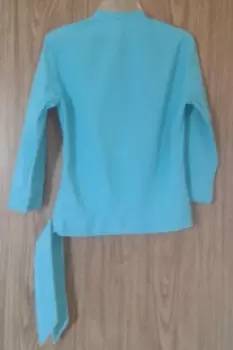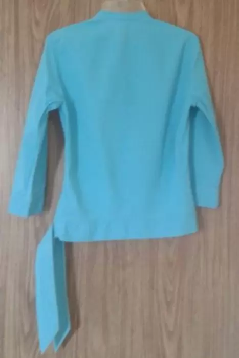 Muy Bonita Blusa estilo Oriental.Marca : EdoardosTalla : ChicaManga : 3 /4Corte y cierre : Alta costura (cierre oculto al costado)Color : AquaLa tela estira.Perfecta para una ocasiòn especial. No lo pienses màs y llèvatela!!