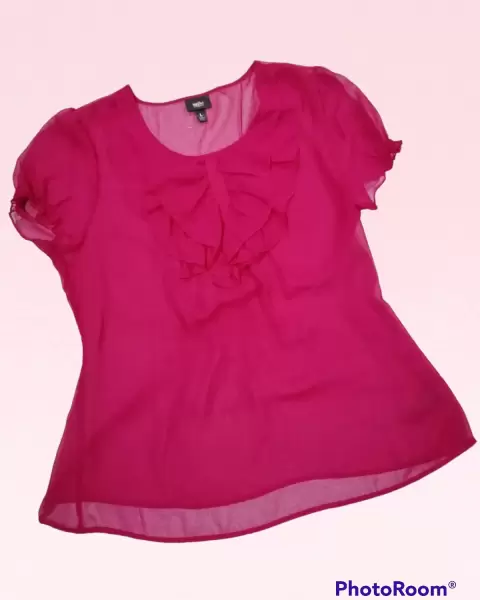 Preciosa blusa Mossimo. Bonita blusa de gasa con volados al frente, cuello redondo y manga corta