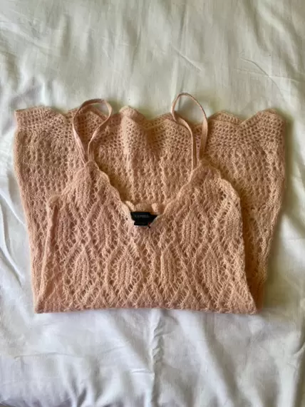 Preciosa Blusa tirantes. Preciosa blusa de tirantes color rosa pastel, tejida, talla xs amplia a S