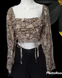Precioso croptop ajustable. Crop top fresco de manga larga y resorte en el puño. . Con cintillas al frente para ajustar el largo y resorte a la espalda para un ajuste perfecto.