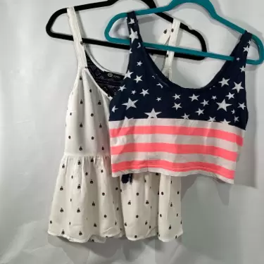 Set de blusas, tela súper ligera, ideal para calor, la beige con espalda transparente ,marca C&A , talla M , la de estrellas es corta , marca Bershka, talla L