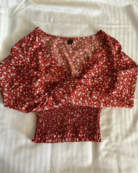 SHEIN blusa con flores. Blusa floreada de Shein talla S/M en color rojo, seminueva