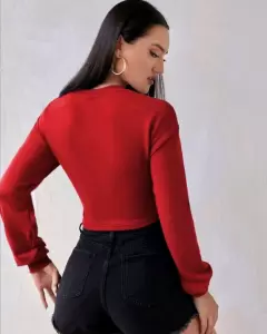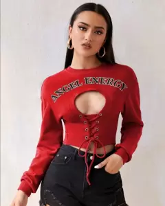 SHEIN Blusa Manga Larga (Rojo). ❤️Pullover con abertura con cordón con estampado de letra. ❤️Medidas:~Hombro: 53.1 cm~Largo: 42.8 cm~Largo de la manga: 55.2 cm~Pecho: 99.5 cm.(NOTA: Es completamente nuevo solo es sacado de la bolsita que da Shein:)