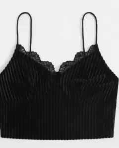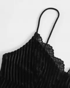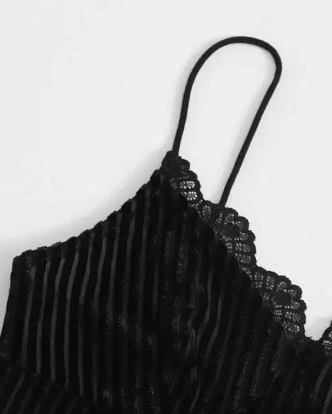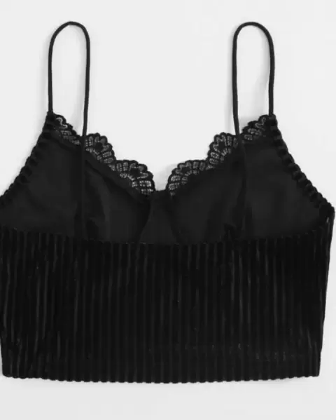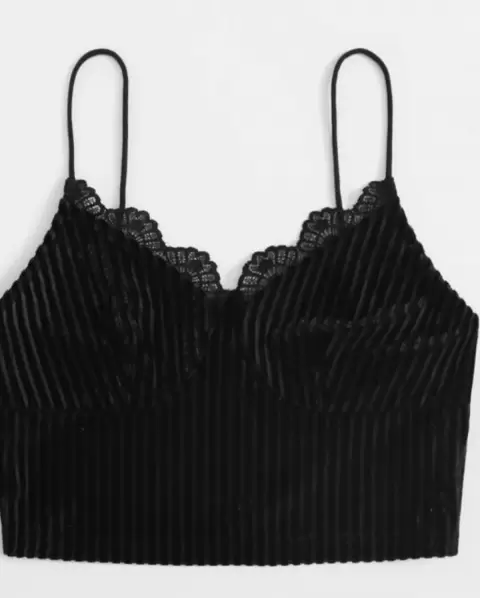 SHEIN. Top de tirante, con escote de encaje, color negro. Material: terciopelo. Talla L Largo: 40.7 cm Pecho: 84.5 cm