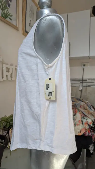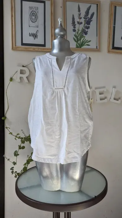 St Jhon's bay top tank. Nueva con etiqueta sin detallesTalla grande .comodidad Nuevo con las etiquetas. Top sin mangas de ajuste holgado con cuello en V blanca de St John's Bay para mujer