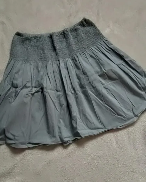 Strapless. Blusa strapless de mezclilla suaveColor azul claro casi gris