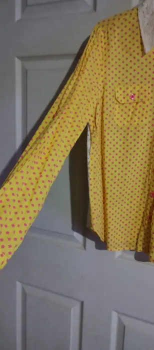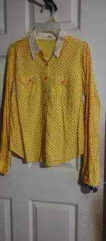 Bonita blusa amarilla , la tela es bastante fresca y sus mangas largas se pueden convertir en tres cuartos... La espalda luce muy bonita porque es de encaje...