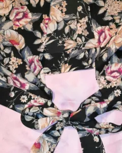 Top con díseño floreado, escote en la espaldaFrente cuello V cruzado y cordon para amarrar en la espaldaManga larga acampada