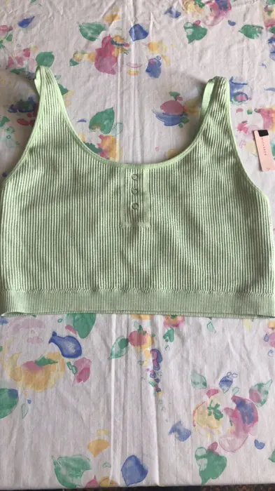 top color verde limon tela con licra con tirantes y cuello V muy bonito
