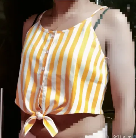 Bonito top amarillo y blanco en buen estado sin ningún detalle