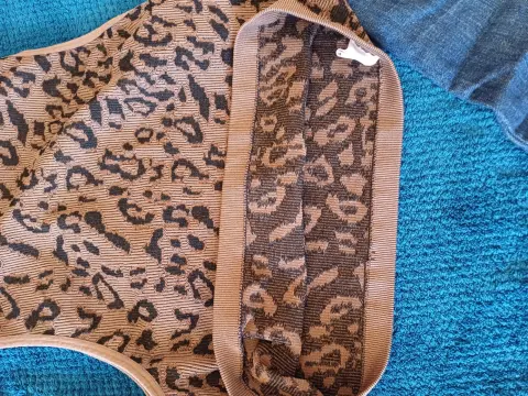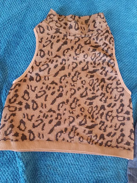 Top animal print talla chica, marca sfera, color camel oscuro con manchas negras, marca shasa