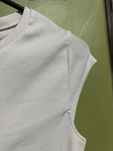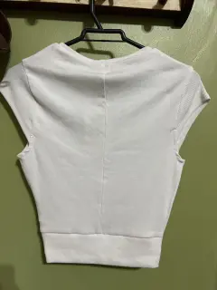 Top básico. Top corto básico blanco, con detalle cruzado al frente, manga corta, talla extra chica, perfecto para niñas y adolescentes