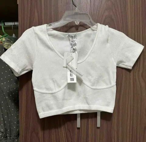 Top blanco. Nuevo, con etiqueta y sin detalles. La tela estira y queda arriba del ombligo.