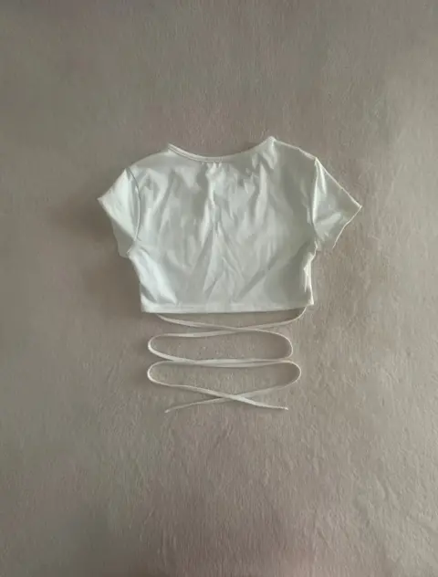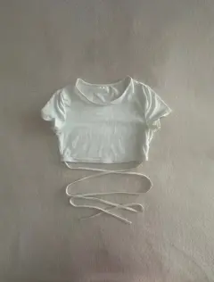 Top blanco con cordón. Hermosa y fresca blusa blanca con cordones para amarrar a la cintura.