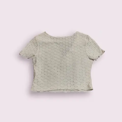 Lindo top de encaje, usado en varias ocasiones.Usado, talla S.El estilo es como tipo agujeritos/puntos como se puede apreciar en las fotos.Muy bonito No queda ajustado.El color está un poco desgastado, lo normal por el tiempo de uso.