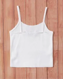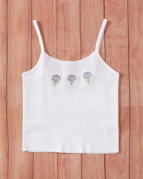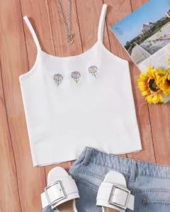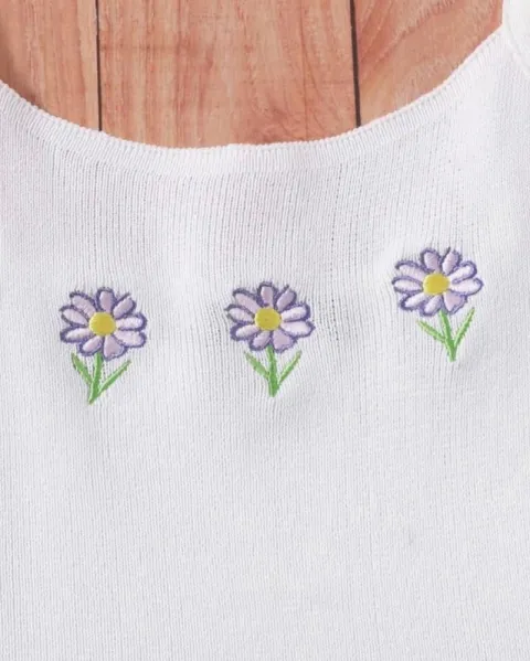 Top blanco de tirantes con flor tejida. Talla: S (las medidas exactas se encuentran en la ultima foto)Si te interesa un paquete házmelo saber, con gusto te lo armamos