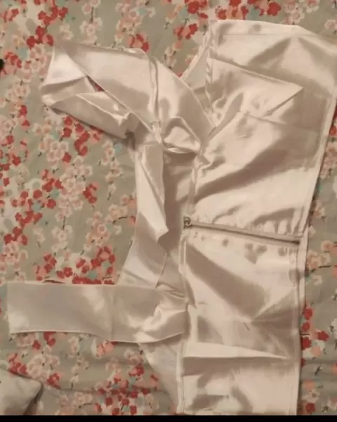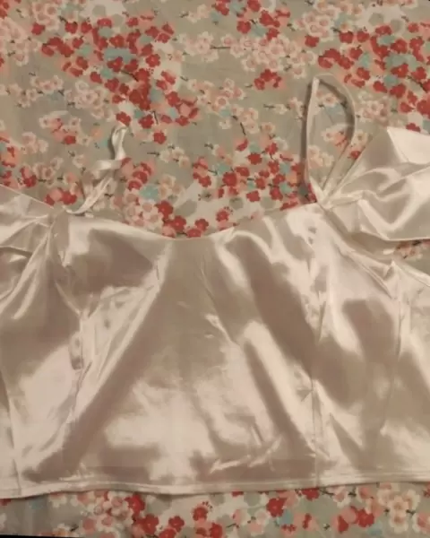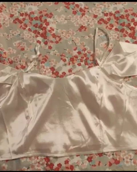 Top blanco satinado nuevo, lo vendo porque no me quedo.No estira, no transparenta.Pongo medidas tomadas por mi 120 pecho, largo 28 cm, dice talla 4xl.