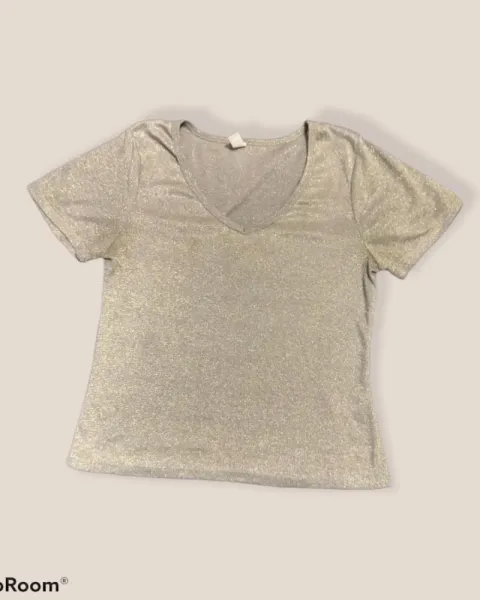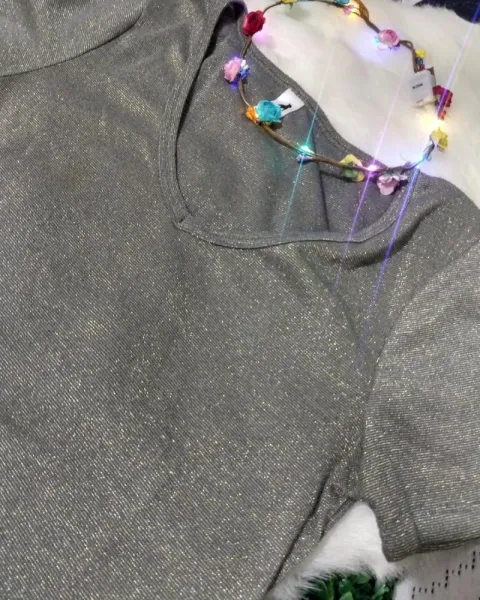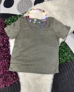 Top Brillante V ✨✨✨. Blusa Top Color: Verde oscuro con destellos dorados Queda arriba del ombligo Super Basic de clóset Talla: L (La talla es súper reducida, normalmente soy talla S y esta blusa en talla L me quedo perfecto ✨)Todos los envíos incluye regalo 🤩Para más detalles puedes enviarme mensaje 🙂