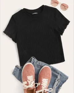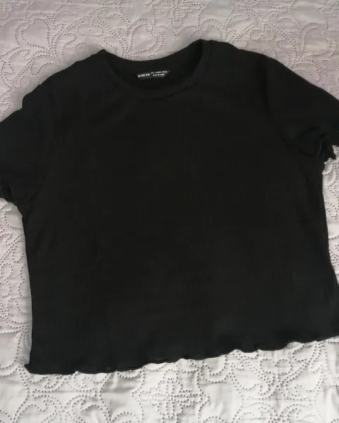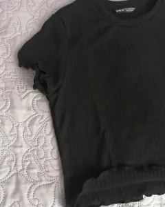 Top canele negro. Super lindo y nuevo. También queda a una talla M. Se transparenta muy poquito. Medidas ultima imagen.Es corto