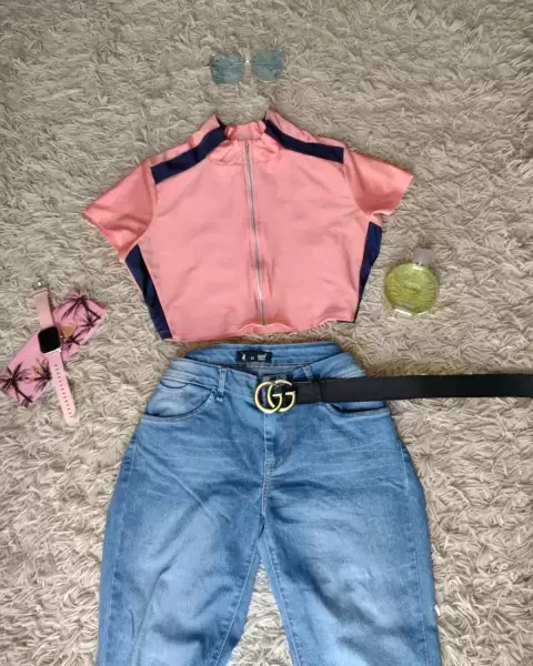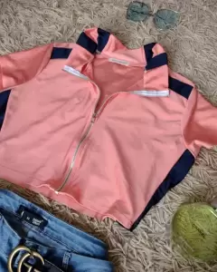 Top super lindo color rosa palo con cierre ,puedes usarlo casual o deportivo está 1000/10 es unitalla lo cual queda de S hasta L