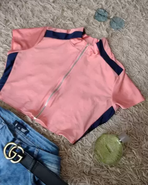 Top color rosa palo con cierre. Top super lindo color rosa palo con cierre ,puedes usarlo casual o deportivo está 1000/10 es unitalla lo cual queda de S hasta L