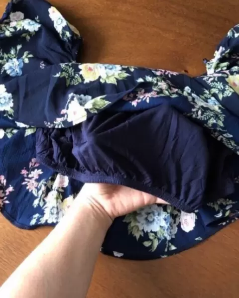 Top corto con blusón encima, en flores color azul marino talla M aunque es más una S