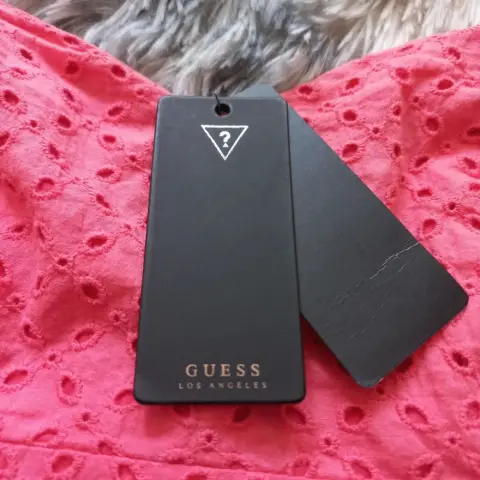Top coral Guess. Bonito top color coral tela 100% algodón con cierre en un costado, la tela tiene un bonito grabado y tiene en su parte superior como silicon para que no se este bajando.la prenda