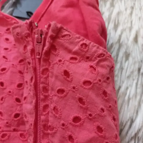 Bonito top color coral tela 100% algodón con cierre en un costado, la tela tiene un bonito grabado y tiene en su parte superior como silicon para que no se este bajando.la prenda