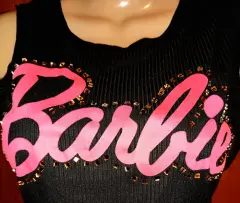 Top de Barbie color negro. Linda blusa corta tipo ombliguera de letras Barbie con piedritas color negroMedidasAxila axila 40 cmLargo 40 cmAncho Cintura 35Estira un poco