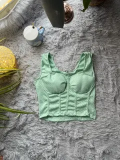 Top unitalla de copaVerde , tela de licra de cuadros