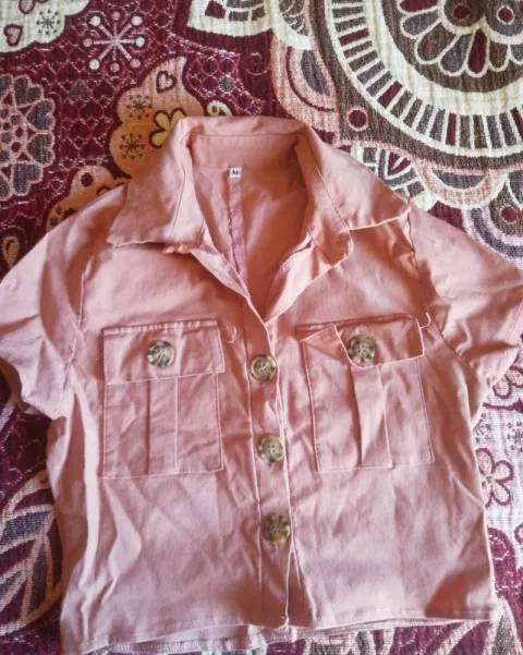 Top de manga corta y larga. Top de marga larga con botones en frente y pantalón rojo