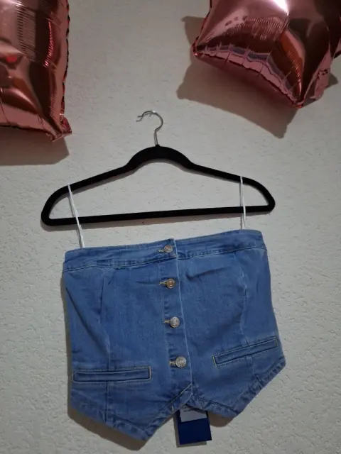 Top de mezclilla. Top straples sin tirantes con botones de mezclilla talla M,