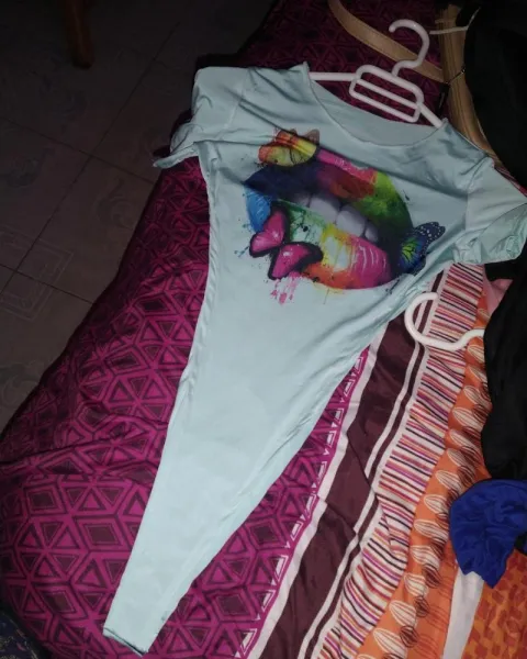Top de moda con un exelente estampado de color verde agua conedidas de ancho de 35 y de largo 48 cm tipo body