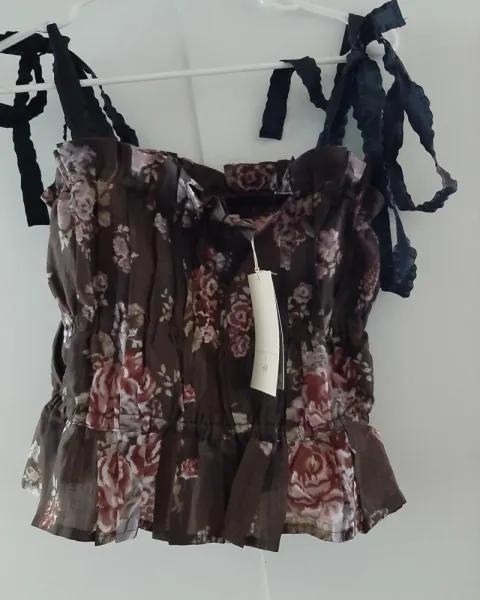 Top estampado flores con listón. En perfectas condiciones nueva con etiqueta la talla viene reducida se sugiere una talla más a la que se suele usar