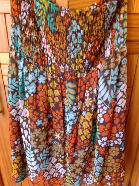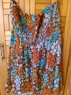 Es un Top floreado, con resorte en la parte del pecho y espalda, tiene un forro en color café, excelente para este clima 🥵.Talla: S y M.