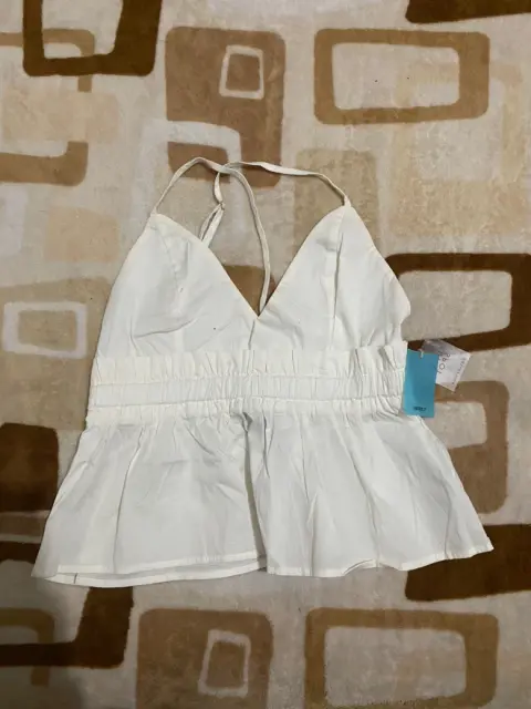 Top blanco marca Forever 21 con etiqueta talla S.Sin detalles