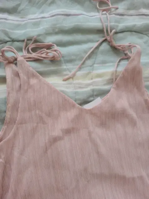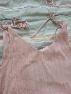 Top fresco Mango, nuevo, color palo de rosa, tela corrugada, estira bastante, tiene tirantes ajustables en hombros. La tela es muy fresca