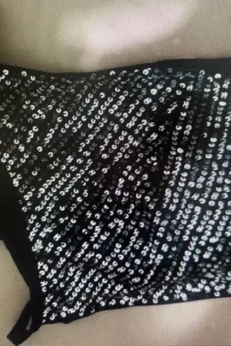 Top halter de lentejuelas. Top halter cruzado de la espalda abierto con cordón envolvente de lentejuelas en color negro que brilla espectacular. Serás una diva con esta pieza única.LARGO 18PECHO 88