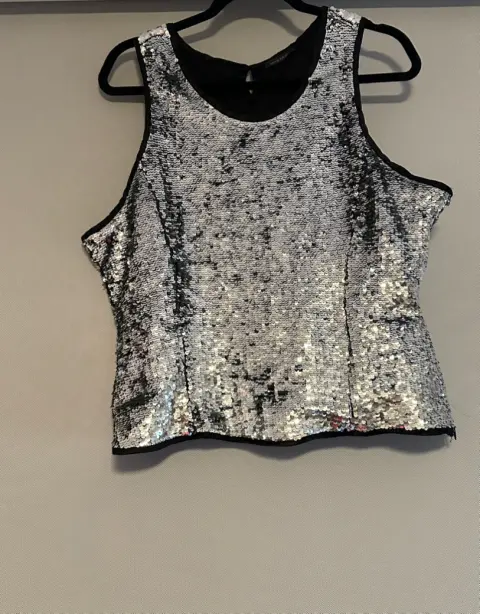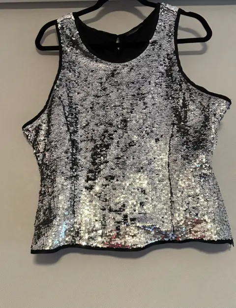 Top lentejuelas. Top plateado con lentejuelas talla EG 34