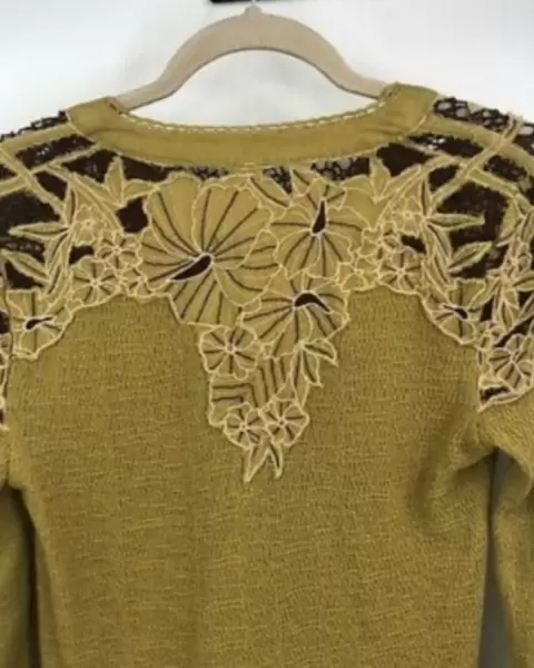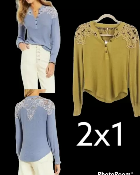Lindos Tops manga larga , tela estira de punto, bordado en hombros y parte trasera, cuello redondo con botonadura, cómo mostaza y azul.Un sólo top tiene un precio de $1850