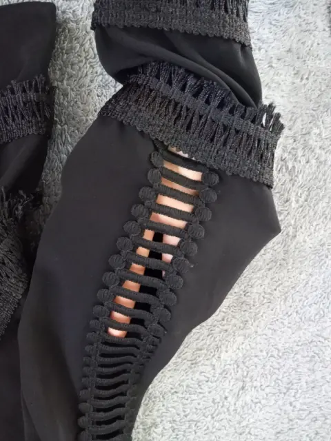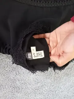 Hermosos detalles y costuras aberturas a los lados de las mangas solo se uso una vez muy hermosa con un diseño estrafalario tengo más prenditas pueden checar mi clóset hermosas