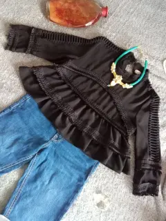 Top manga larga negro. Hermosos detalles y costuras aberturas a los lados de las mangas solo se uso una vez muy hermosa con un diseño estrafalario tengo más prenditas pueden checar mi clóset hermosas