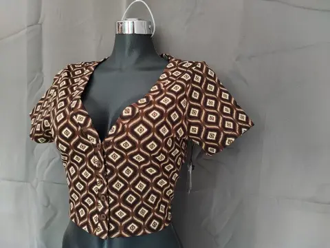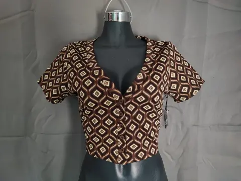 Top retro geo Jacquard Color : Multicolor Genero: MujerMaterial: Mezcla de poliéster Longitud de manga : Corta