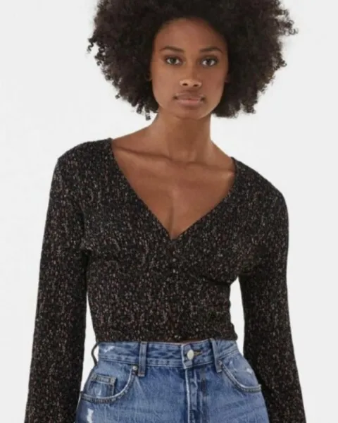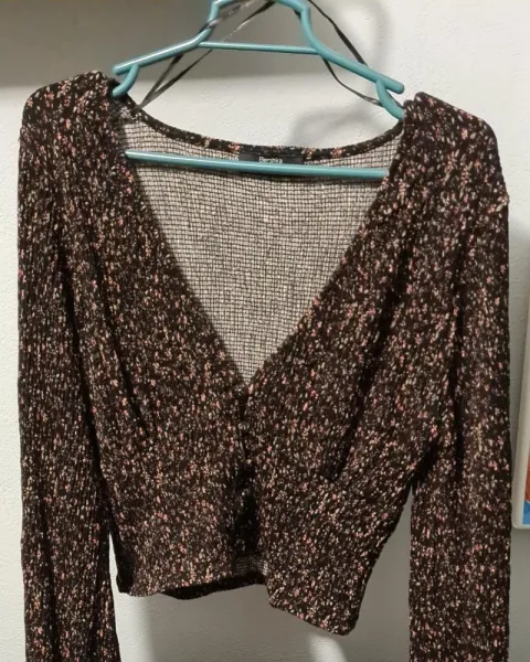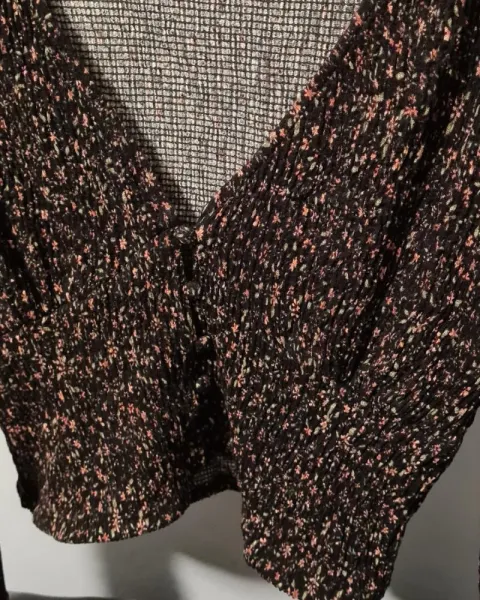 Top marga larga bershka. Top bershka escote v manga larga negra con flores rosas.