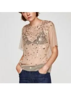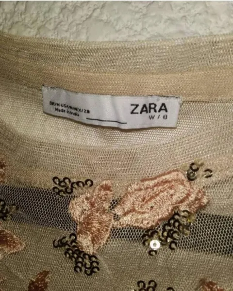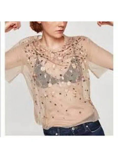 Top meshj bordado Zara. Bello top suelto de mesh con delicados bordados de flores y lentejuelas. Para ponerse solo o con blusa de tirantes. Ya es tuyo llévalo!!!